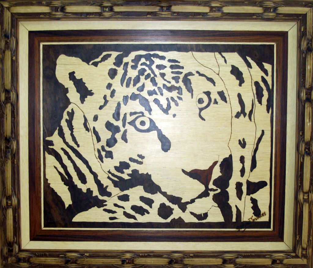 Painel Onça Pintada em Marchetaria (vendido feira na de Natal 2011)